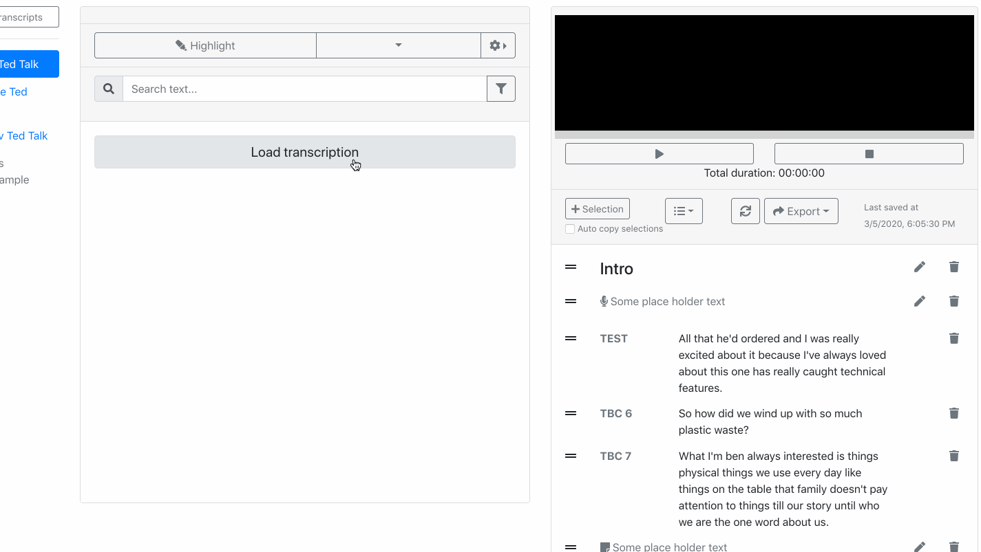 Add text from a transcript